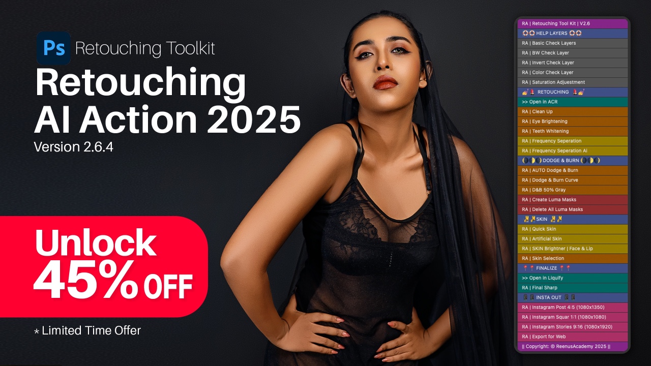 Take your portrait retouching workflow to the next level with the Reenus Academy AI Retouching Action – 2025. This professionally crafted Photoshop action set is designed to speed up your retouching process while maintaining the highest quality, making it perfect for photographers, retouchers, and digital artists.